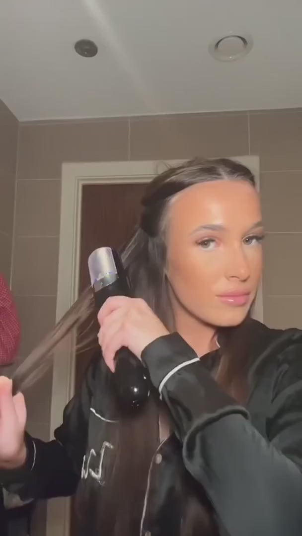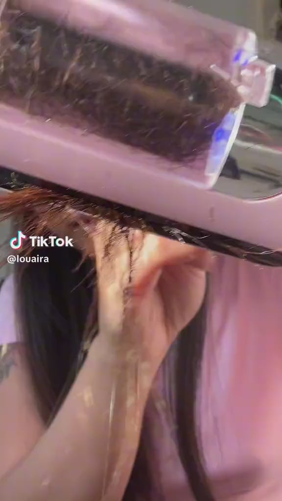 It works on most straight, wavy, and lightly curly hair. Very curly or coiled hair may need to be straightened first so the device can guide the strands smoothly through the trimming chamber.